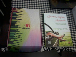 Foi assim que os livros chegaram aqui em casa, dois na caixinha e Meu Amor, Meu Bem, Meu Querido fora. Eu queria muito ler Meu Amor, Meu Bem, Meu Querido, pq gostei da sinopse e fiquei interessada porque apesar do livro parecer tão bom a maioria acha "regular", falando no Skoob mesmo. Já li em uma resenha por exemplo que a pessoa gostou da história mas não da maneira que a autora escolheu pra contá-la.Então quero ver se vou gostar ou não, porque também tiveram as pessoas que gostaram bastante. Ah é, na verdade o que me interessou não é nem muita gente achar regular, é ele andar tão falado em todos os blogs, e tantas promoções com ele. Deve ser de parceria da Novo Conceito, né?